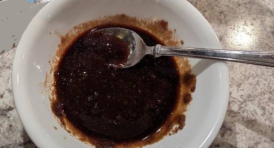 Pour some brown sugar into a bowl and add a packet of dry beef and onion soup mix or brown gravy mix. Stir it up till mixed together thoroughly and then add enough soy sauce to turn the mixture into a thick but pourable liquid paste. Everyone wants to know how much? I don’t know because I don’t measure anything. Just mix it up and taste it. Adjust as needed. I know, it’s a trial-and-error learning process, but you’ll catch onto with time. My rule of thumb is moderation. Too little is better than too much. Don’t worry, it’s not going to taste bad. It ’ll either be good or great! As I said earlier, you can’t screw this up. Use my pictures as a guide.